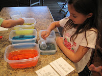 We mix colored water ALL the time around here but it never occurred to me to make recipe cards for the girls to follow!! Genius! It makes the lesson that much better. Thank you : )