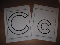 Letter C lacing cards, I print these on cardstock then laminate for durability, then use shoe laces or yarn for lacing.