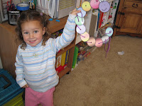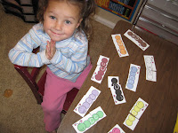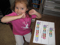 Graphing cards : they cards go from 1-10. You can have your kids put bingo dots on the squares, beans, cheerios, m&ms;, whatever. I usually laminate it then have her color the boxes in with a dry erase marker.