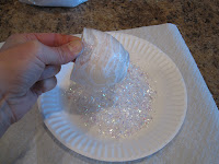 - Place fake snow flakes on paper plate
