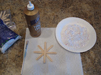 3. Pour some fake snow onto a paper plate. Have the child place the snowflake, glue side down, into the snow, then pick it up and turn it over to allow to dry. (If you want a thicker layer of snow, repeat the process by adding more glue on top of the layer of snow, and dip it again in the snow.)