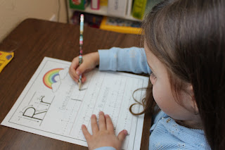 Foam Letter Builders: I cut the shapes from foam and let her use them to make the letters. You could also use my Magnetic Letter Builders as well!