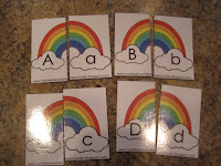 Alphabet Letter Match: This is a new one, but I couldn’t resist with the 2 halves of the rainbow it was too easy! So simple, cut the rainbows apart, then use as a capital/lowercase letter matching game! (Sorry, I realize there’s a typo on the jpg, but its fixed on the download!)