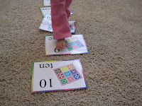 Quilt Floor Numbers: I made these large floor numbers so that we can play a hopscotch type game. I call out a number and she jumps to it! You could also have them put the cards in numerical order. The number cards go from 1-10.