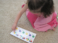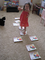 Yarn Floor Numbers: I made these large floor numbers so that we can play a hopscotch type game. I call out a number and she jumps to it! You could also have them put the cards in numerical order. The number cards go from 1-10.