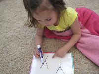 Foam Letter Builders: I cut the shapes from foam and let her use them to make the letters. You could also use my Magnetic Letter Builders as well!