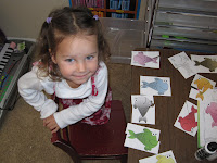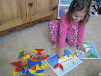 Tangram Puzzles: So a whale isn’t exactly a Fish, but it worked for us this week. She loves doing these puzzles, as do all of my children. I got my puzzle pieces and activity mats at Lakeshore Learning