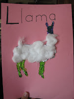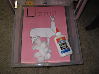 We also read made a fun Llama craft to go with our “Is Your Mama a Llama?” book. I found a llama coloring page, cut it out, and glued it on a piece of construction paper then let her color it and glue on some ripped up cotton balls for the fur.